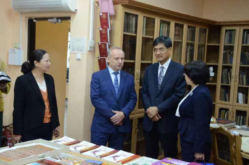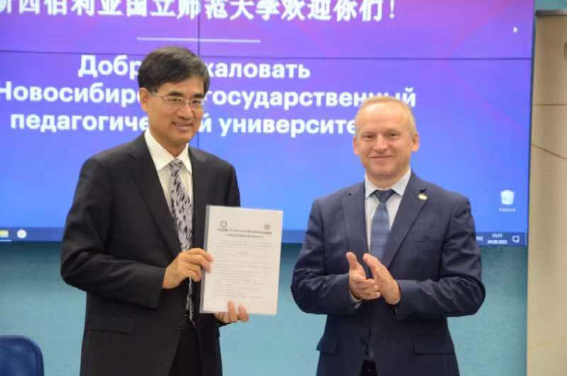 9月24日上午,新疆维吾尔自治区政协副主席、Ky开元集团党委书记许咸宜一行5人访问俄罗斯新西伯利亚国立师范大学,与新西伯利亚国立师范大学校长阿列克谢·格拉晓夫亲切会面并进行座谈。