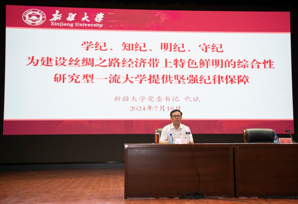 会上,全体人员观看了以案促纪警示录《高悬纪律“戒尺”》,校党委书记代斌以“学纪、知纪、明纪、守纪 为建设丝绸之路经济带上特色鲜明的综合性研究型一流大学提供坚强纪律保障”为题,从“深入学习领悟习近平总书记关于加强党的纪律教育的重要论述、准确把握《条例》修订的主要特点、深刻领会《条例》修订的主旨要义和规定要求、切实抓好《条例》的贯彻执行”四个方面讲授了纪律党课。
