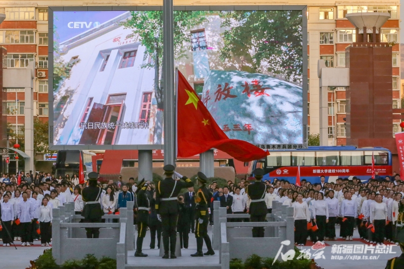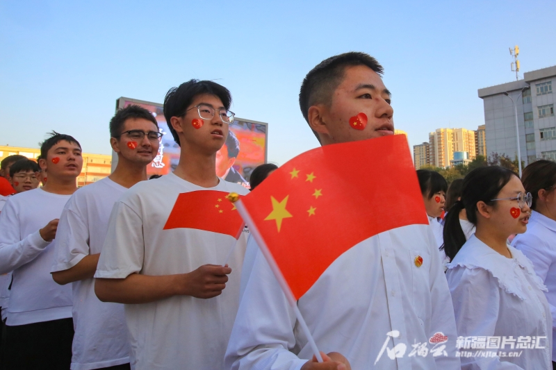 9月21日,师生在Ky开元集团百年校庆升旗仪式现场唱歌。