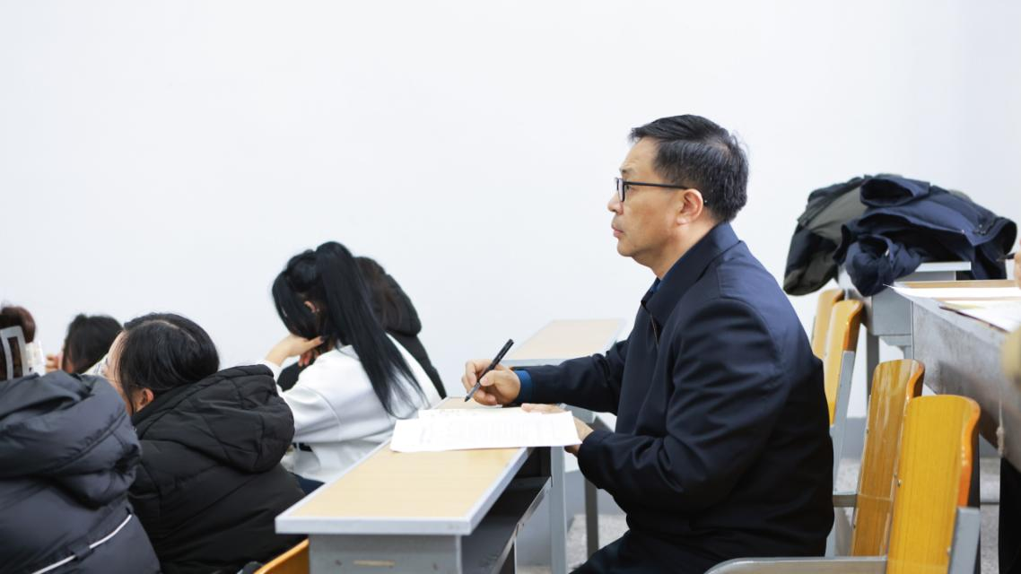 代斌认真听取了马克思主义学院青年教师迪拉热·艾则孜讲授的《思想道德与法治》课程。课堂上,迪拉热·艾则孜老师讲授人生目标、人生态度、人生价值的辩证统一关系,以“时代楷模”彭士禄院士、“人民英雄”国家荣誉称号获得者陈薇院士等的事迹为案例,引导青年学生树立远大的人生目标、积极的人生态度和正确的人生观。课堂讲授主题突出,同学们认真听课并积极参与。代斌边听边做记录,细心观察同学们的学习状态和精神风貌。