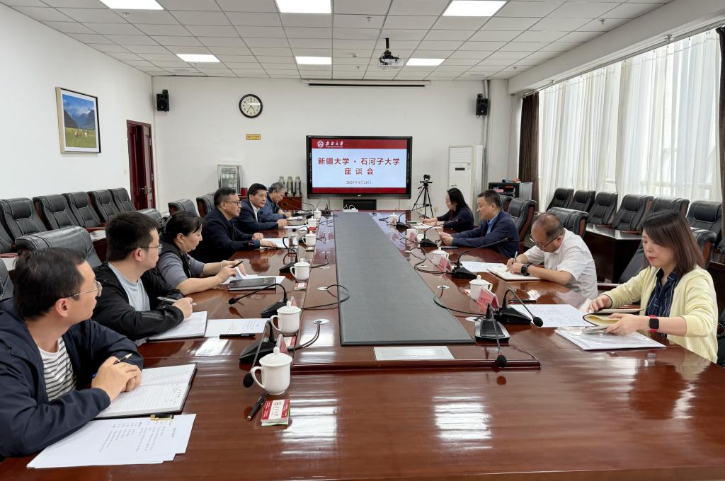 4月28日下午,石河子大学党委常委、副校长李剑一行来校调研并开展座谈。校党委书记代斌主持座谈会。