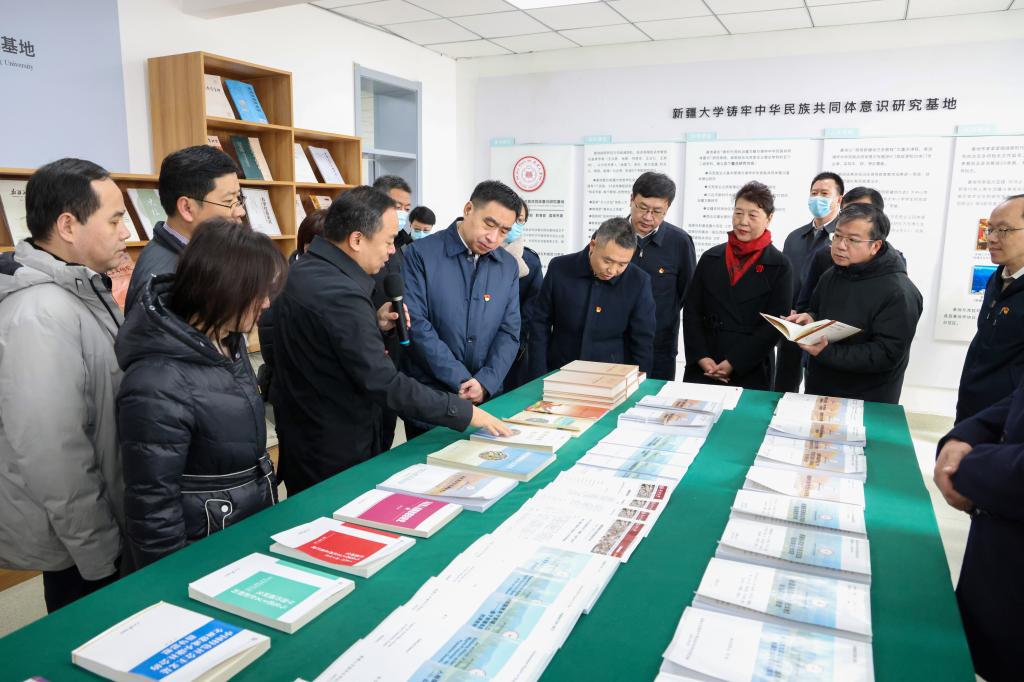 随后,顾光海为第十批中央单位援疆干部一行介绍了马克思主义学院、铸牢中华民族共同体意识研究基地办学及科研情况。在校史馆,档案馆馆长于付恩介绍了学校发展历史及取得的重大成就,交流分享了学习习近平总书记到校视察发表重要讲话重要指示精神的心得体会。(来源:党委组织(人事)部)