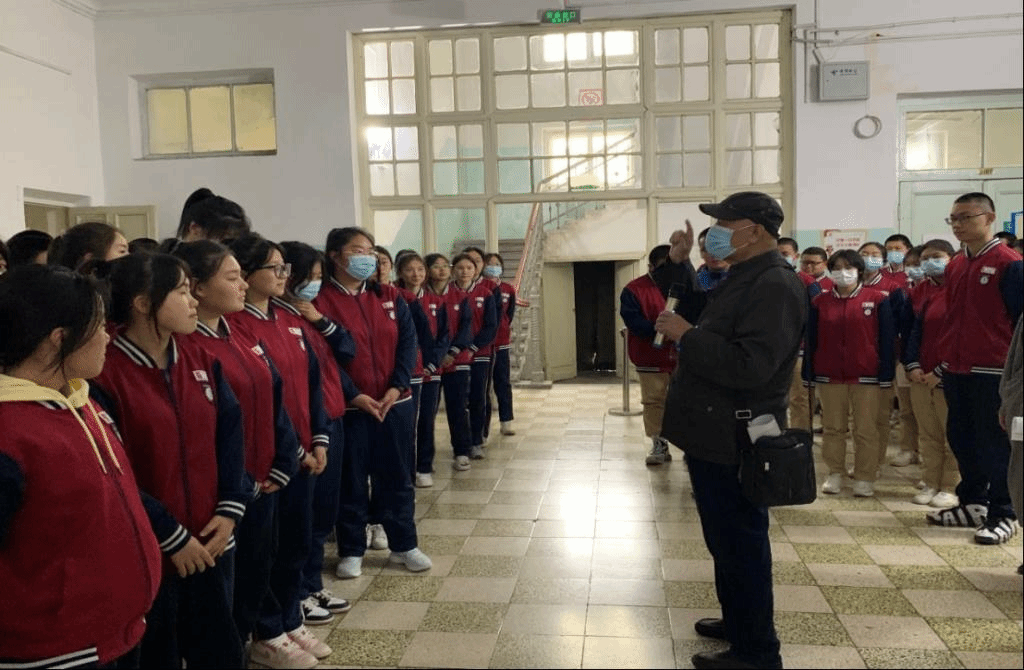 随后,徐教授带领着学生参观了这栋大楼的内部结构,以小故事的形式,详细讲述了当年在这栋大楼里发生的故事,生动有趣的语言感染了在场所有的学生,同学们听得津津有味,还不时向徐教授提问、互动交流。