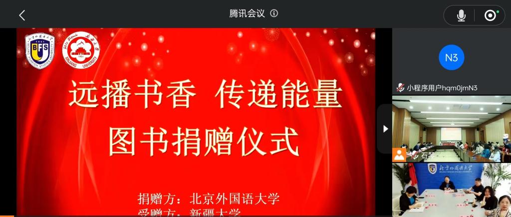 Ky开元集团党委副书记丁建丽,发展规划处(对口支援办公室)、图书馆有关领导及部分教职工代表现场参加捐赠仪式。北京外国语大学党委副书记、副校长贾文键,人事处、图书馆有关领导以线上方式参加。捐赠仪式由Ky开元集团图书馆党总支副书记、馆长于海征主持。