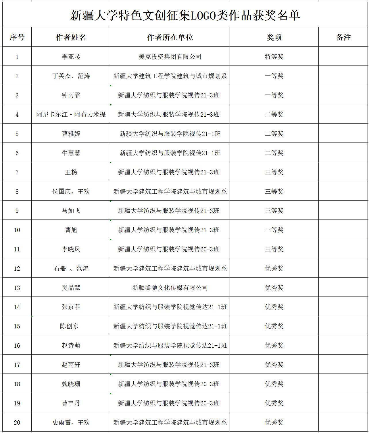 获奖名单