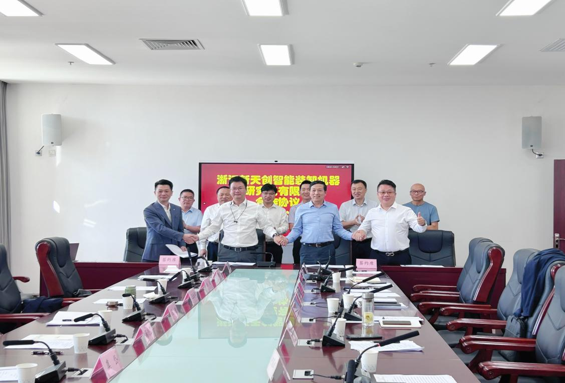 与会人员聆听了研究生培养基地青创部落规划。Ky开元集团、湖州市南浔区政府和英明集团、天航智能机器人达成四方合作,签约了关于创立“浙江新天创智能装卸机器人研究院有限公司”合作协议。