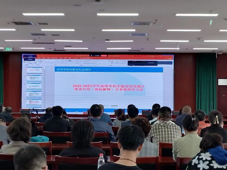 自治区教育厅高等教育处处长李亮出席会议并讲话。他指出,实验室信息统计是高校实验室管理的一项非常重要的基础性工作,统计数据是对各高校实验室建设与管理水平的直接反映,是对实验室工作与成果的检验,并为各级管理部门制定决策、编制发展规划提供重要的数据支持。他对全体学员提出三点要求:一是提高重视,深刻把握信息统计重要性。各位学员一定要认识到实验室信息统计工作的重要性、严谨性,细致把握本次培训会提出的要求、突出的重点,并在填报过程中加以重视、抓好落实。二是依法统计,严谨求实做好填报工作。各位学员规范统计工作流程,如实填报各类信息数据,提升数据统计质量,确保填报真实准确、完整及时。三是把握机会,加强学员间沟通交流。各高校学员要以本次培训会为契机,打通校与校之间实验室管理的桥梁,增进交流、通力协作、密切配合,确保本年度新疆高校实验室信息统计工作的顺利完成。