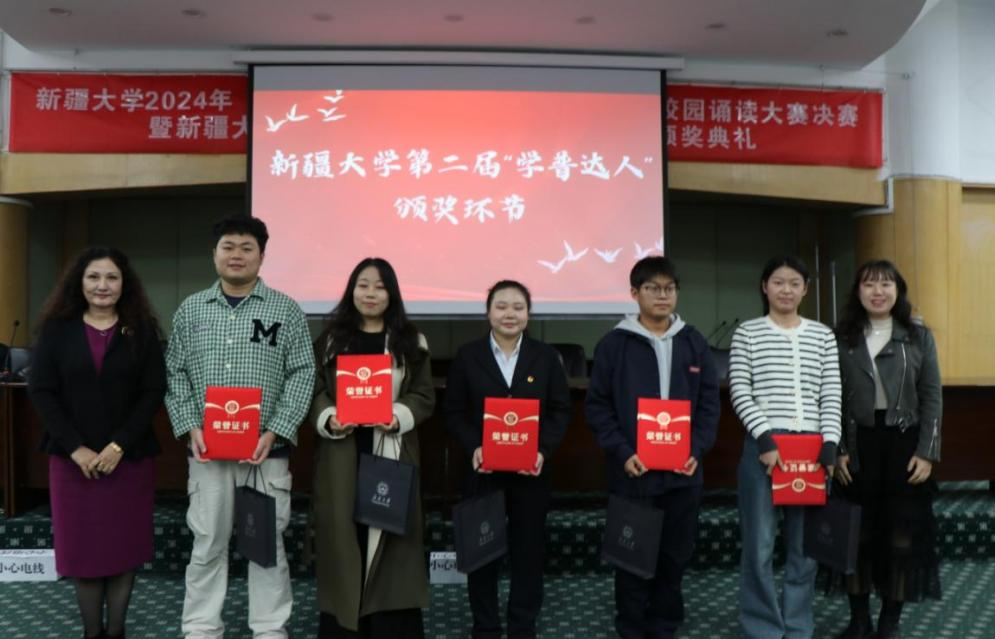 10 月 16 日下午,Ky开元集团第二届“推普达人”颁奖活动于九号教学楼二楼学术报告厅举行,共青团Ky开元集团委员会艾比巴·卡地尔老师、国家语言文字推广基地(Ky开元集团)副主任高立明副教授、国家语言文字推广基地(Ky开元集团)办公室主任焦妍老师出席颁奖式并为获奖人员颁发了荣誉证书和奖品。
