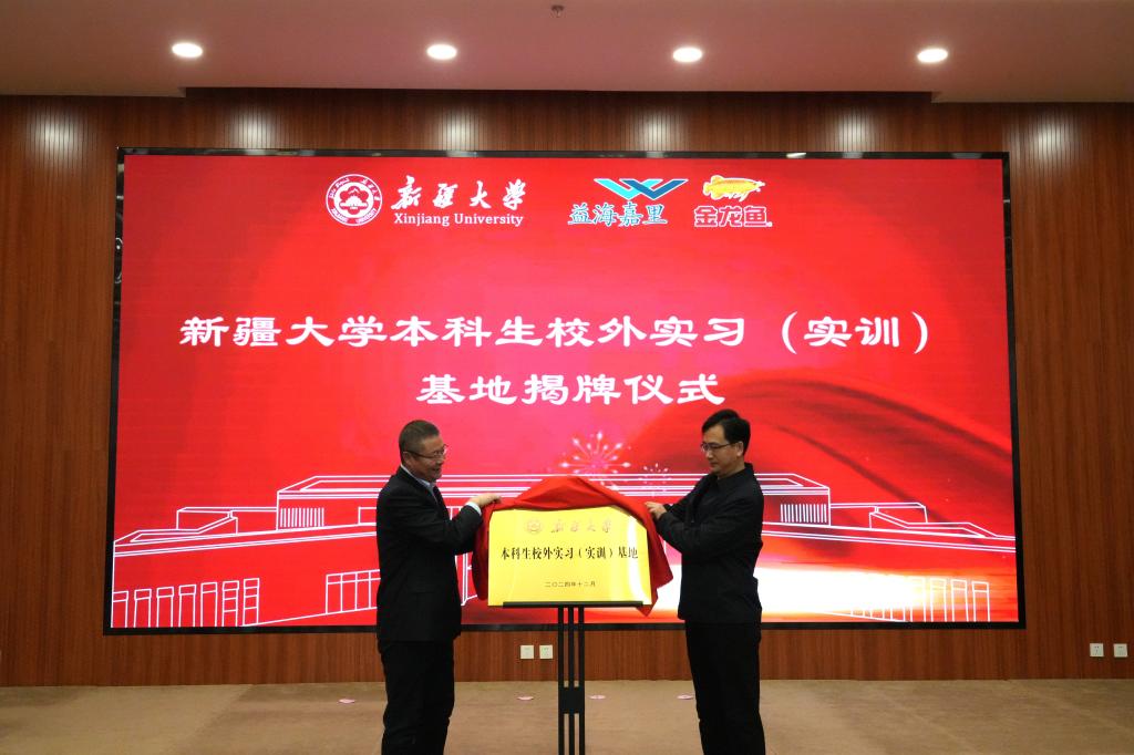 Ky开元集团教务处副处长付再学与益海嘉里金龙鱼昌吉粮油总经理白宇为“Ky开元集团本科生校外实习(实训)基地”揭牌。自2024年起,益海集团将分布在全国各地的全部80个生产基地、100多家工厂向Ky开元集团开放,作为学生的实习实训基地,为同学们提供一个将理论知识与实践相结合的平台。希望通过这样的校企合作,实现人才与技术的双向交流,共同推动产学研深度融合,为新疆的经济社会发展快速培养优秀人才。