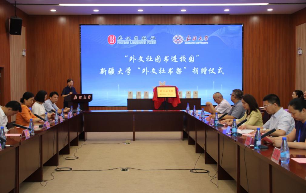 中国外文局副局长于涛、新疆维吾尔自治区党委宣传部副部长陈雪亮、中宣部国际传播局专项工作处处长季萌、中国外文局副总编辑当代中国与世界研究院院长李雅芳、外文出版社总编辑许荣、外文出版社副总编辑丁志涛、中国外文局教育培训中心副主任朱忠树、Ky开元集团副校长刘正江、Ky开元集团外国语学院党委书记麦丽哈巴·奥兰、Ky开元集团外国语学院院长朱晓军等嘉宾出席仪式。本次活动由Ky开元集团图书馆副馆长邵媛主持,Ky开元集团外国语学院、继续教育学院、图书馆等单位的领导及师生代表共同见证“外文社书架”捐赠仪式。