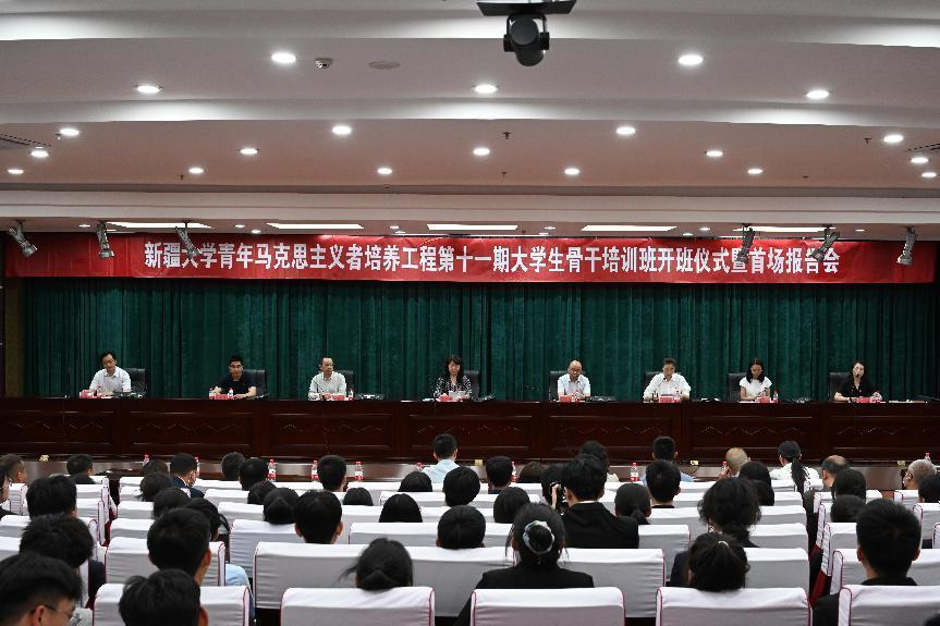 开班仪式上,校团委副书记、美育(艺术)教学研究部副主任、第十一期培训班副班主任何蕾介绍了培训班开班情况。参加仪式的领导向培训班学员赠送了学习图书和学习资料。政治与公共管理学院席健评同学和法学院娜则莱·吐尔逊同学分别做表态发言。