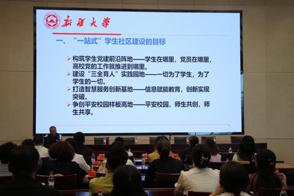 8月18日下午,新疆财经大学学生工作部部长魏昕一行45人来Ky开元集团博达校区座谈交流“一站式”学生社区建设。党委学生工作部(学生社区教育管理服务中心)副部长(副主任)李育强主持座谈会,学生社区教育管理服务中心相关科室及社区辅导员参加座谈。