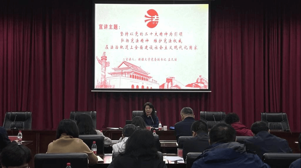 孟凡丽围绕《中华人民共和国宪法》精神,从法治是全面建设社会主义现代化国家的必然要求和重要保障、中国式现代化必须走中国特色社会主义法治道路、坚持依法治疆、助力全面建设社会主义现代化国家、弘扬宪法精神、履行宪法使命等方面进行了阐述,对进一步推动法治校园建设、推进思想政治工作具有重要作用。