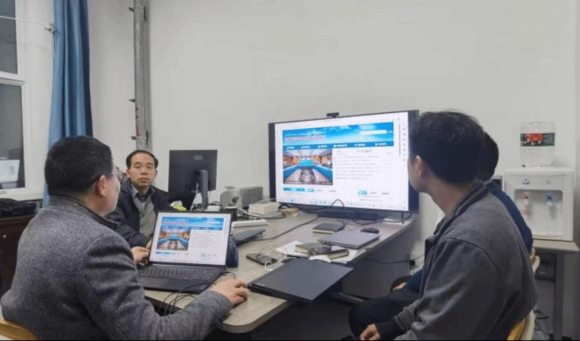 2023年4月,欧阳方平教授与团队成员讨论项目申报