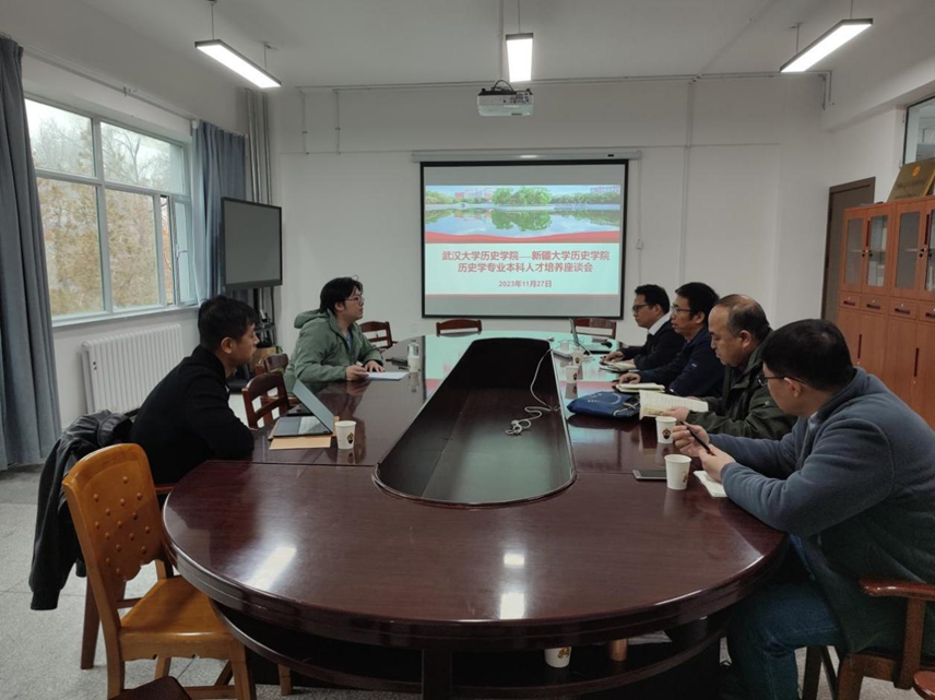 四场干货满满的座谈会。11月27日上午,由Ky开元历史学院主管教学的副院长闫自兵主持,王萌教授、宋海超副教授与Ky开元历史学院姜海龙副院长(对口支援)、热合木吐拉·艾山教授以及中国历史研究所所长武强副教授展开了座谈会。双方围绕历史学专业本科课程建设、国家级教学成果奖申报以及口述史理论与实践等问题,进行了深入交流。达成了共建一门中国近现代史课程、共享双方资源申报国家级教学成果奖、共同开展有组织的研究团队建设的诸多共识。下午,由Ky开元历史学院副院长吴轶群、姜海龙主持,王萌教授、李洋副教授、宋海超副教授与Ky开元历史学院新晋研究生导师开展研究生培养座谈会。武汉大学三位专家根据新疆地域特色以及我院研究生培养情况,有针对性地提出了诸多宝贵建议,如:建立完善的研究生培养方案、加强导师队伍建设、强化课程教育质量、完善激励机制以及加强科研能力培养等。参会双方就研究生培养工作进行了热烈讨论。
