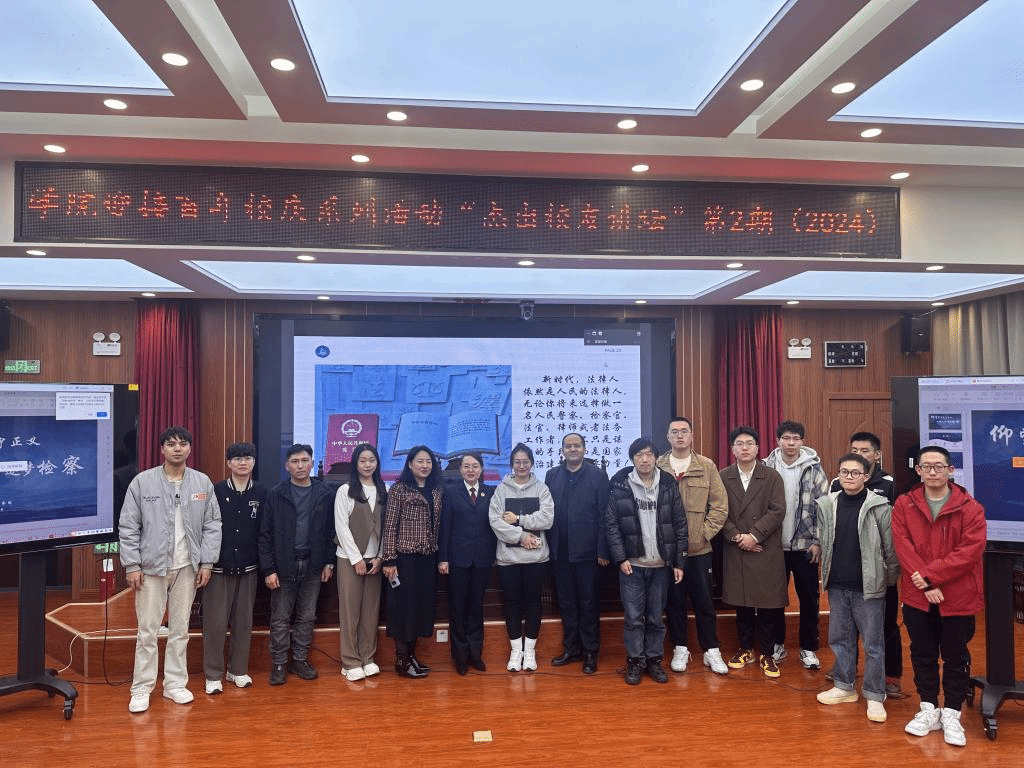 报告内容丰富,精彩生动。在讲座过程中,法学院党委副书记、纪委书记李芳与李茜就学生学习、就业、考研等问题进行互动。同学们认真听讲,并就专业理论和业务实践向李茜踊跃提问,李茜对同学们提出的问题进行了耐心细致解答,在座同学深感受益匪浅。讲座结束后,李芳代表学院向李茜赠送纪念品,在场师生与李茜合影留念。