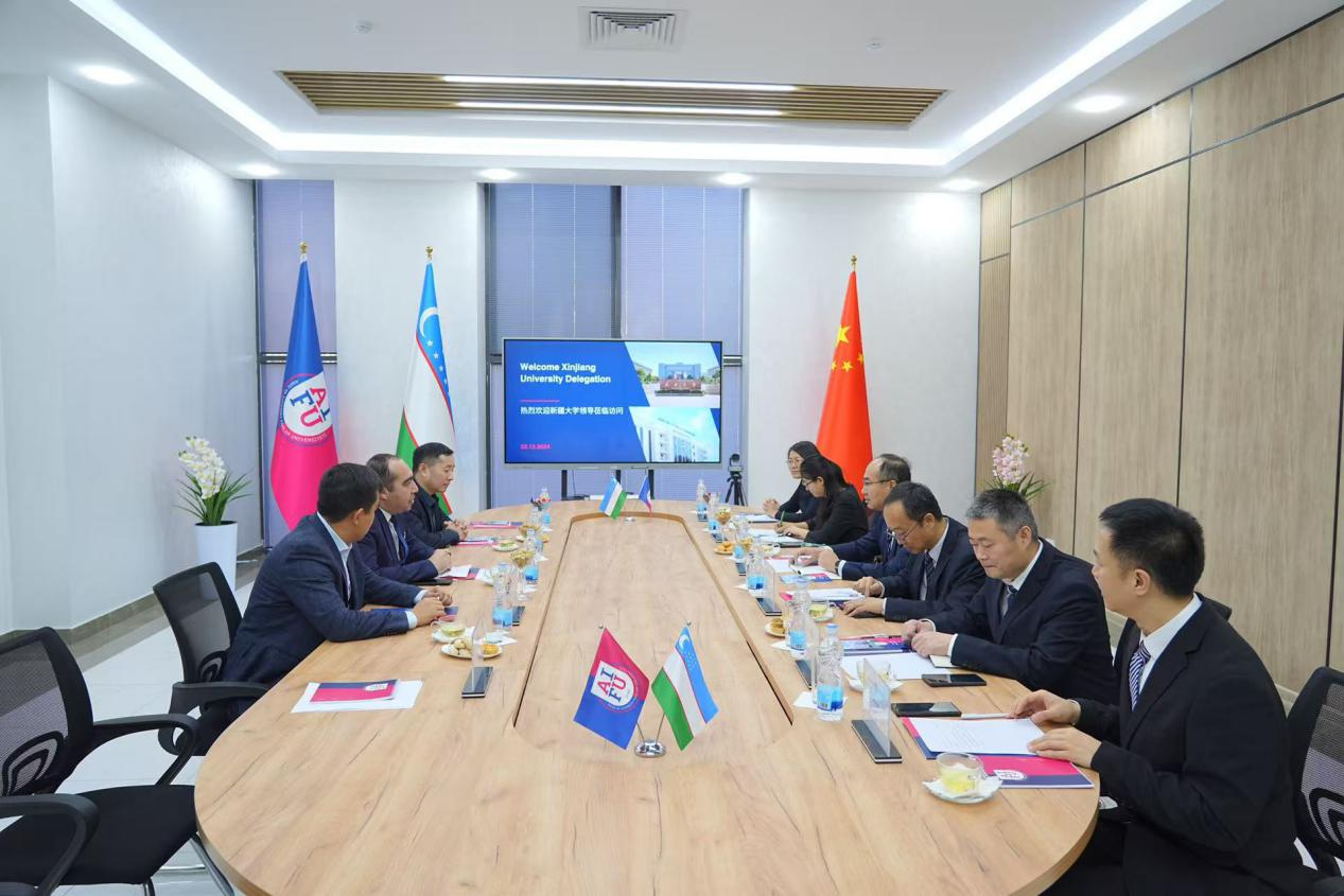 24日下午,晋刚一行访问了乌兹别克斯坦丝绸之路国际旅游与文化遗产大学。丝绸之路国际旅游与文化遗产大学负责科研的副校长邹统钎对晋刚一行的来访表示热烈欢迎,他指出作为成立于2018年由联合国教科文组织及中国、德国、澳大利亚、乌兹别克斯坦等国师资团队参与建设的中亚地区第一所旅游专业的高等教育学府,重点为乌兹别克斯坦与中亚培养高水平旅游、文化、遗产、传媒等方面管理人才。今年以来与Ky开元集团旅游学科的学术交流和科研合作不断深化,也建立了良好合作关系。希望今后与Ky开元集团在文化旅游、区域国别等领域不断加强人才培养、科研合作,提升双方合作的层次和水平。晋刚对丝绸之路国际旅游与文化遗产大学的热情接待表示感谢,他指出丝绸之路国际旅游与文化遗产大学依托联合国教科文组织等优质资源,在旅游文化等国际化人才培养、人文交流等方面取得了卓越成就。希望今后能不断深化两校旅游、历史、新闻等学科专业的合作,在人才培养、科研合作、师资培训等方面加强交流,促进双方共同发展。与会人员围绕旅游师资培训、中亚小语种+专业人才培养等进行深入交流。丝绸之路国际旅游与文化遗产大学国际交流部部长萨马里迪诺夫·萨多尔贝克(Samariddinov Sadorbek)、教育发展规划处负责人穆罕默德穆罗德.约尔库洛夫(Muhammadmurod Yerkulov)、旅游学院院长诺迪尔·胡什瓦克托夫(Nodir Khushvaktov)、外国语言和全球研究系主任图尔金·苏尔顿诺夫(Tulkin Sultonov)和国际合作处奥尔祖贝克·伊诺亚托夫(Orzubek Inoyatov)等部门负责人参加了座谈会。会后晋刚一行参观了丝绸之路国际旅游与文化遗产大学图书馆、酒店管理实验室等教学场地。