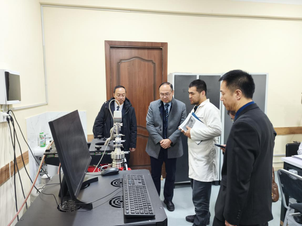 24日上午,代表团一行访问了乌兹别克斯坦撒马尔罕国立大学。撒马尔罕国立大学负责科学事务和创新的副校长哈基姆·胡什瓦克托夫(Hakim Khushvaktov)对晋刚一行的来访表示热烈欢迎,并介绍了学校的发展历史和基本情况,他表示撒马尔罕国立大学作为乌兹别克斯坦历史最悠久、规模最大的高等教育机构之一,目前与国外200多所高校建立了联系,希望能与Ky开元集团在工程技术、信息技术、生物技术、生态环境保护、物理等领域开展科学研究、人才培养、合作办学、师生互访、中文师资培养等深层次的合作。晋刚对撒马尔罕国立大学的热情接待表示感谢,并简要介绍了Ky开元集团的基本情况,他表示Ky开元集团作为以理工学科见长、独具办学特色的综合性大学,与撒马尔罕国立大学在可再生能源、光伏发电、天体物理、材料物理、光学、生物技术、智慧农业、食品工程等领域有着广泛的合作发展空间,希望双方能在联合申报项目、共同开展研究、开展合作办学、加强师生交流等方面密切合作,推动双方的交流与合作达到新水平。与会人员还就下一步组建科研团队、合作开展科研、联合发表论文、联合培养人才等进行了广泛深入的讨论。在校期间,代表团一行参观了撒马尔罕国立大学的光学实验室、材料分析表征实验室等。撒马尔罕国立大学国际合作部主任穆赫塔尔·纳西罗夫(Muhtar Nasirov)、工程物理学院副院长扎维基丁·米尔托舍夫(Zavkiddin Mirtoshev)、农业生物技术和食品安全的萨伊多夫·马马迪约尔(Saidov Mamadiyor)教授、阿卜杜拉希莫夫·明吉吉特(Abdurahimov Mingjigit)教授等部门负责人及专家参加座谈会及相关活动。