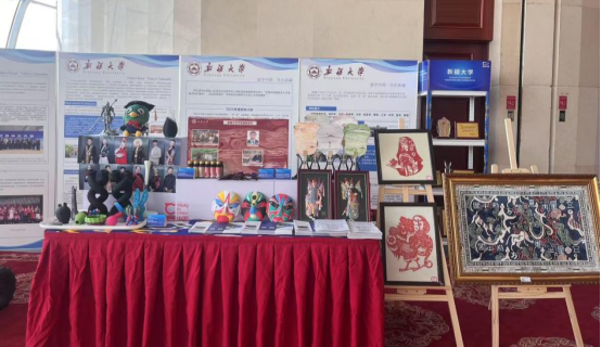 人才培养成果展区集中展示了“汉语桥”全球中文比赛获奖证书、国际学生创意剪纸作品等实物展品,生动展示了学校“专业教育+文化浸润”的双轨培养模式。科技创新展示区重点展示了四项代表性科研成果,包括智能“巡检机器人”、支持多语种实时互译的“自然语言处理平台”、风电机组数字孪生系统以及3D打印产品,充分展现了学校在工程技术、人工智能等领域的教学科研实力。国际校友风采展示区以图文并茂的形式展示了四位在周边国家政府机构、知名高校担任要职的优秀留学生校友的成长轨迹,为潜在留学生提供了宝贵的榜样力量。漆扇文化体验区通过中外参观者共同参与传统漆扇制作,在互动中感受中华工艺之美,增强了展览的趣味性和参与感,直观展现了学校“以文化人、以美育人”的教育理念。