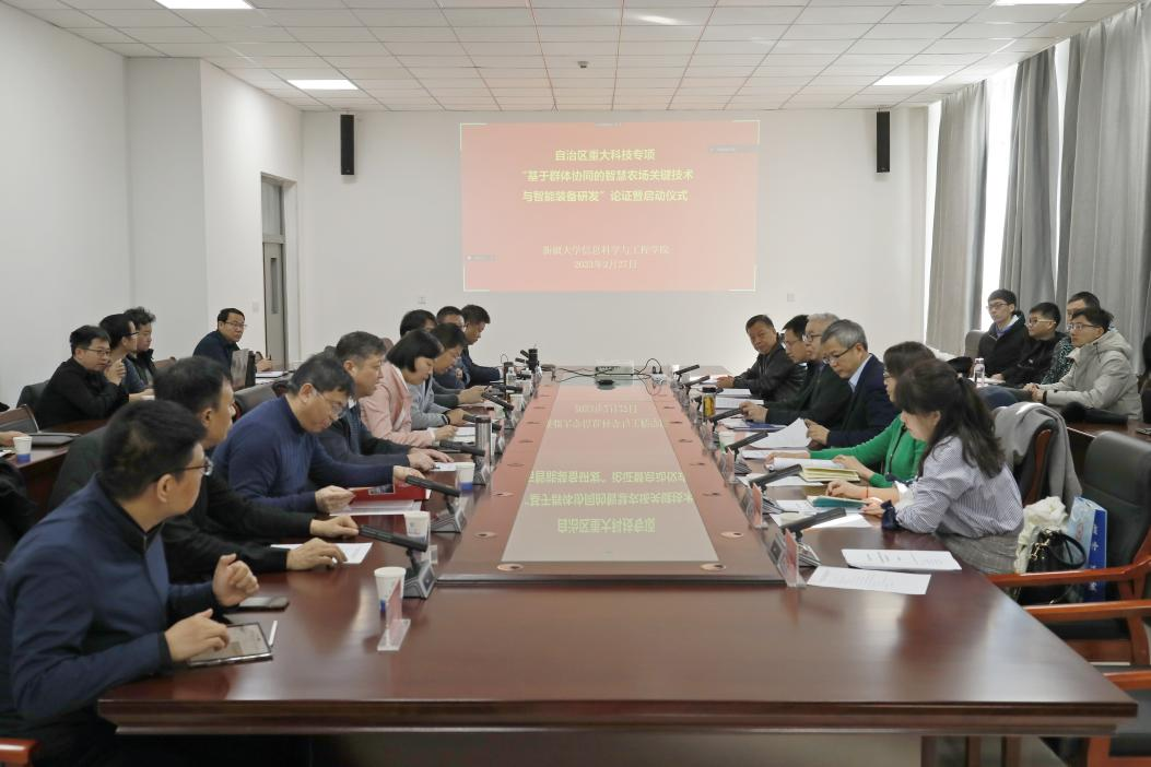 近日,Ky开元集团召开自治区重大科技专项“基于群体协同的智慧农场关键技术与智能装备研发”论证暨启动会。Ky开元集团党委常委、副校长周建平出席启动会并致辞,项目咨询专家组成员、项目组各课题负责人等参加。