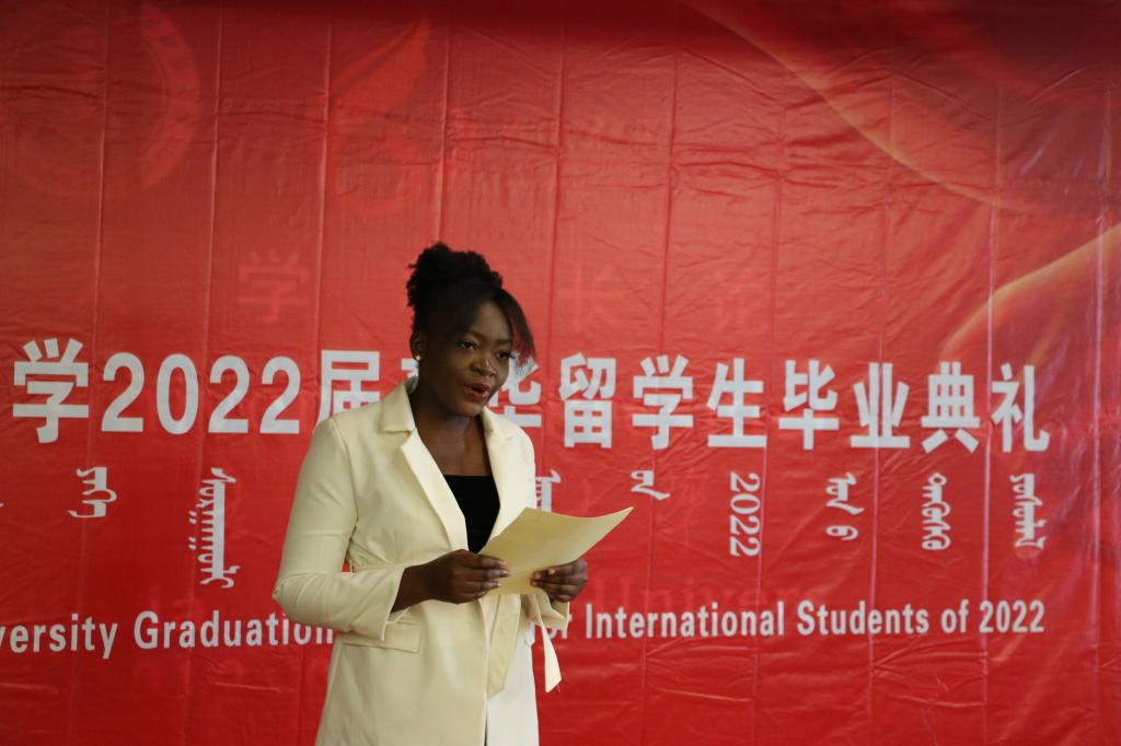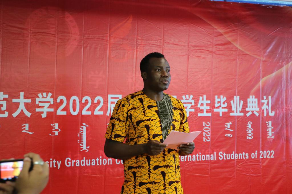 来自巴基斯坦的硕士研究生海达雅、来自蒙古国的本科生额尔登其其格、来自多哥的自费语言进修生本尼克和高飞作为毕业、结业生代表先后发言。同学们在发言中回顾了自己在必赢3003no1线路检测中心度过的美好时光,以及感受到的学校的温暖与力量,表达了对中国政府、对母校、对老师们的感谢与不舍。期待能成为中外友好使者,立志做一名讲好中国故事的国际传播者。