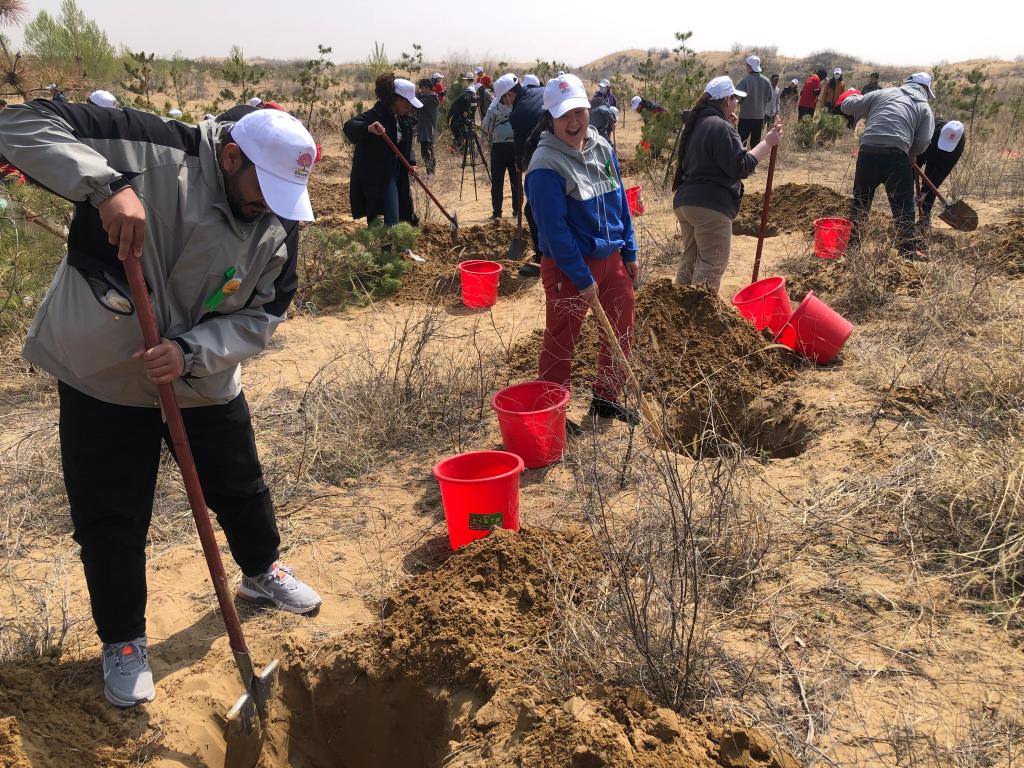 留学生们通过共同栽下象征着中外青年友好的一棵棵小树苗,种下希望,为春天的恩格贝增添了一道靓丽风景,为绿色生态文明建设做出了一份贡献。