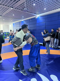 草原文化传统体育活动将氛围推向高潮。射箭场上,留学生学习张弓搭箭,领略草原儿女的豪迈;布鲁投掷间,他们惊叹于古老狩猎智慧;博克比赛中,身着蒙古族服饰的留学生以力量与技巧一较高下;打准游戏区,欢声笑语不断,民间文化魅力极尽彰显。