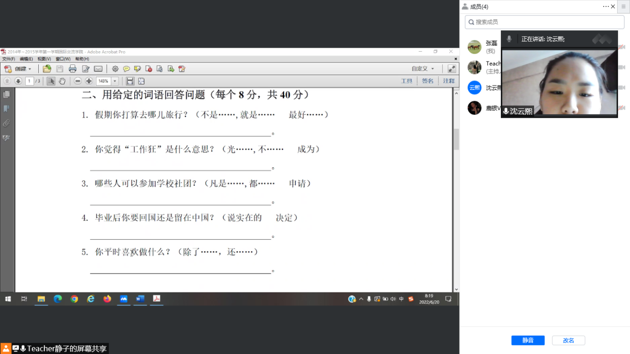 6月20日,必赢官网本学期期末考试拉开序幕。当日必赢官网共开设15门课程的考试,均顺利开考。考试平台包括腾讯会议、学习通、慕课平台等。考试形式包括视频连线、在线提交录音、电子试卷等。总体时间安排合理,教师监考方式有效,链接公布及时,巡考全覆盖。