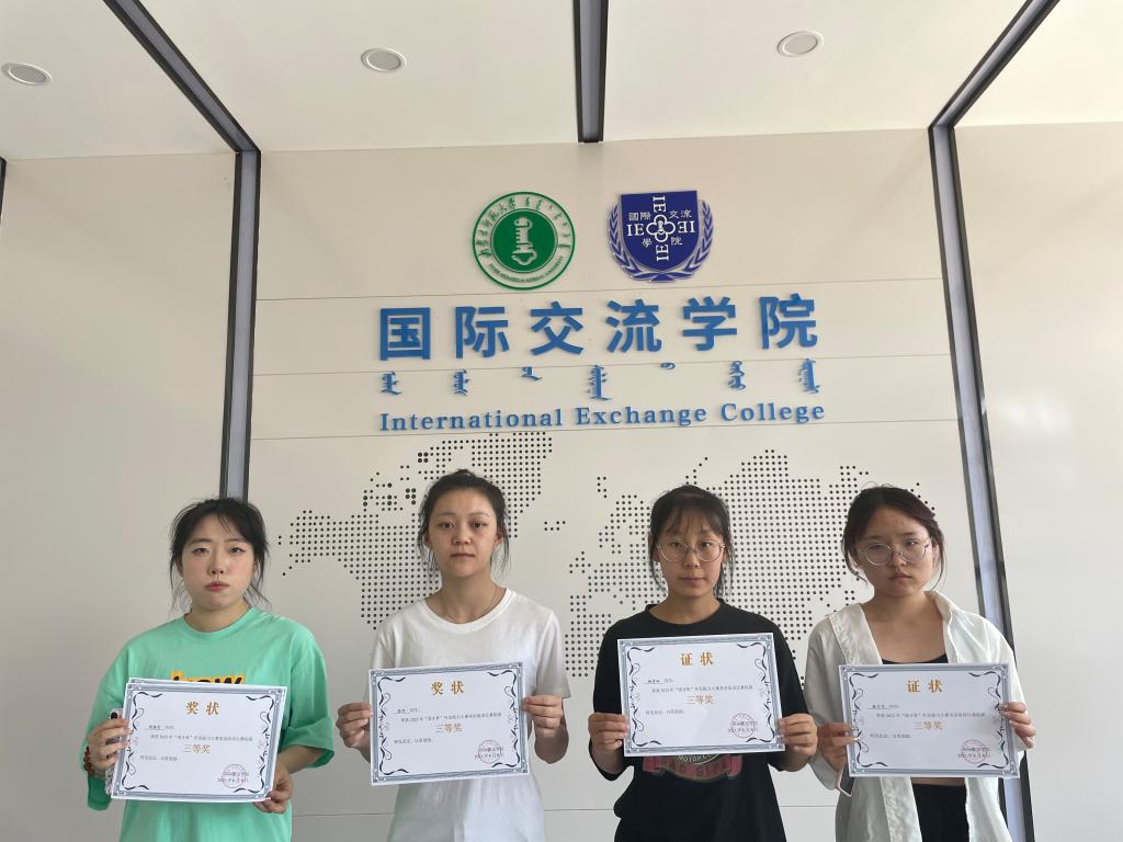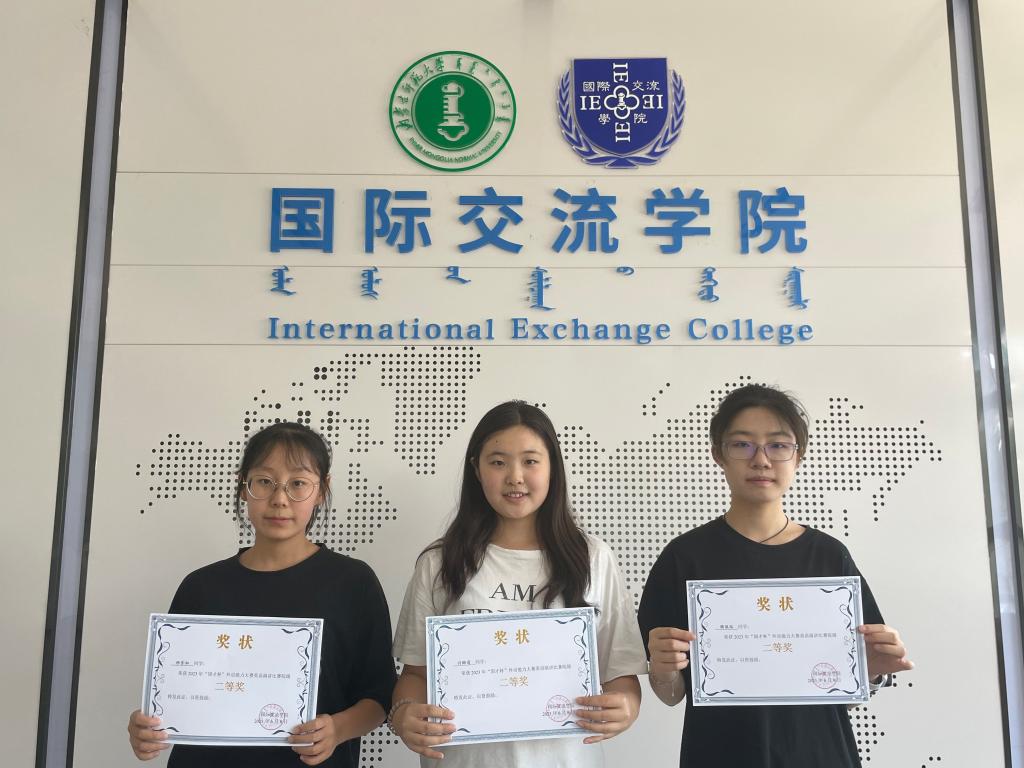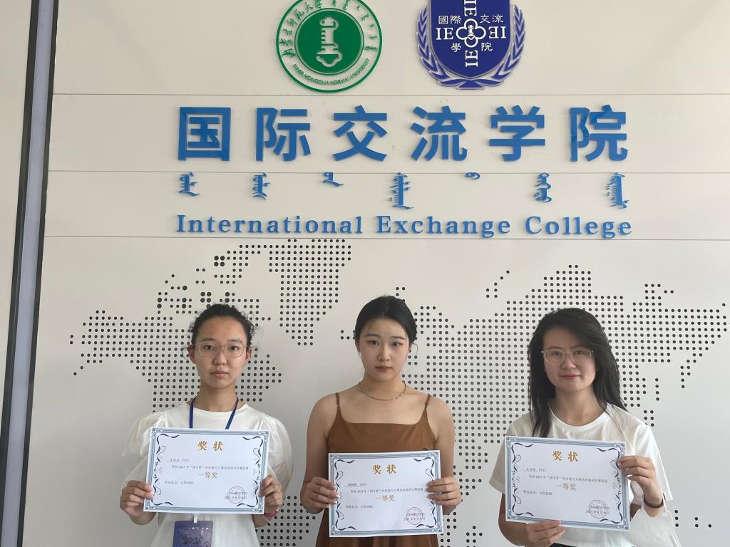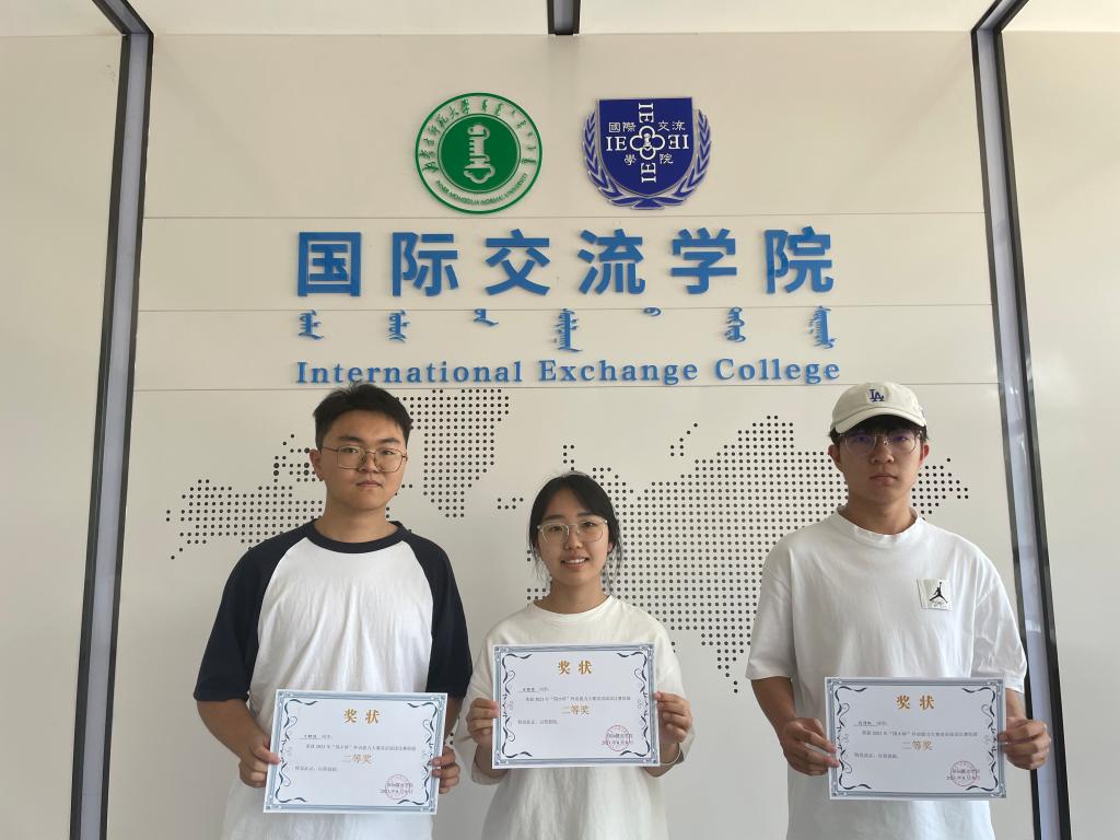从左到右分别是演讲比赛三等奖获得者杨璞、白韵琪、辛硕