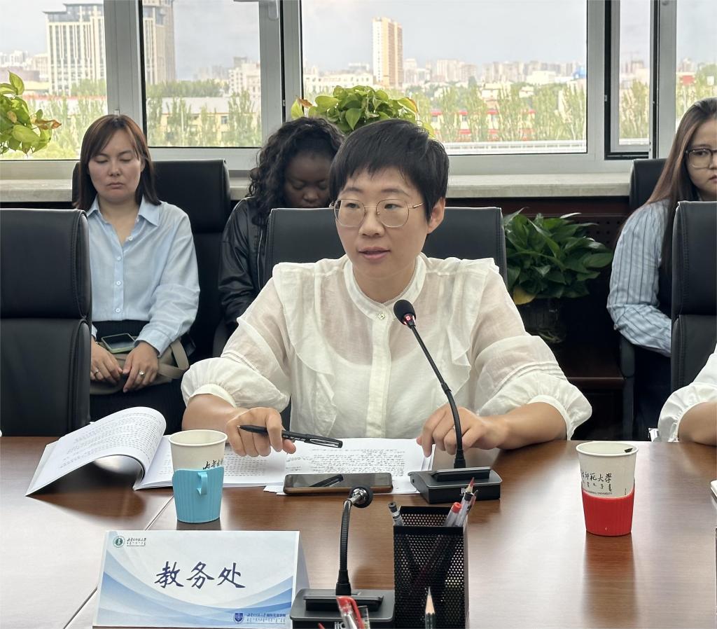 首先,必赢3003no1线路检测中心武海燕院长介绍了中国政府奖学金和内蒙古人民政府奖学金项目情况和必赢官网近几年招收奖学金留学生情况。张磊副院长介绍了今年入专业的留学生情况,并与专业学院进行了学生交接。王晓芳老师详细介绍了留学生学籍管理、毕业要求,解读了中国政府奖学金生绩效评估指标体系。三月老师从留学生日常管理角度出发重点介绍了教育部和内蒙古自治区教育厅、公安出入境管理部门有关留学生日常管理的具体要求。闫春梅副院长和侯欣舒副处长分别就留学生学业、论文、培养方案等方面提出了指导意见。