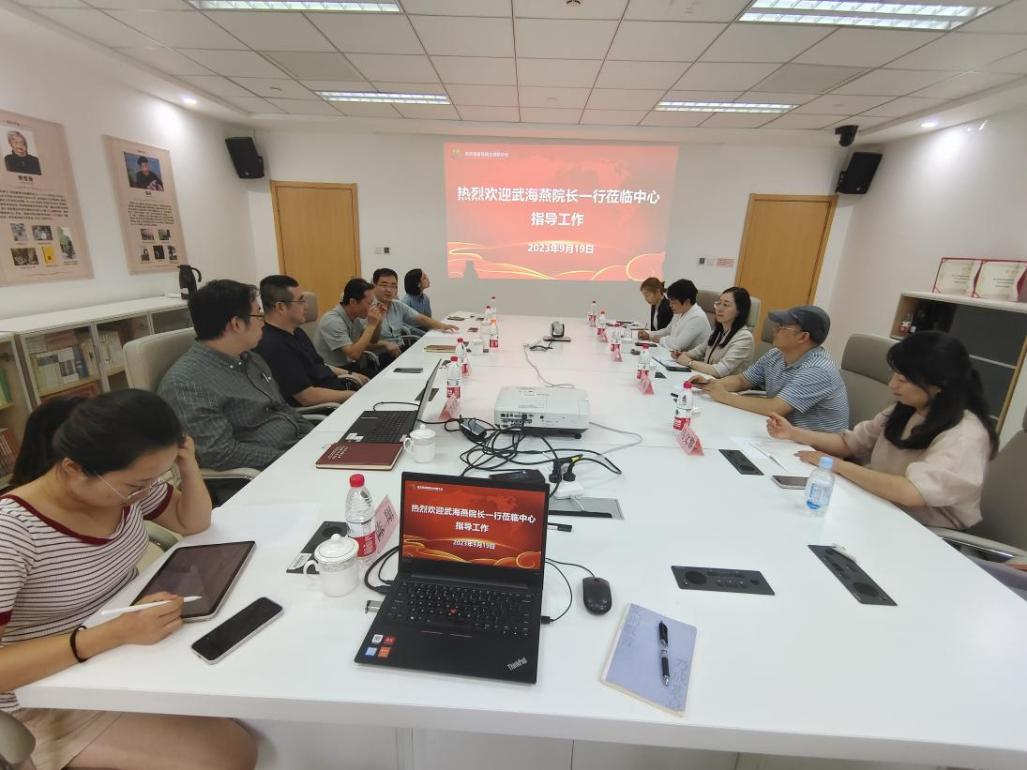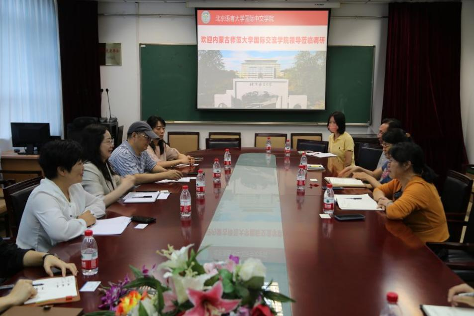 在国际中文学院,调研组在北京语言大学教材研究院副院长刘晓波的带领下,与国际中文学院院长沈庶英、副院长别红樱、相关管理人员及教师代表进行了座谈,双方就来华留学生预科汉语课程教学方法与质量监控体系、课程设置、教学资源共享、学生培养提质增效途径、教学改革等方面进行了深入交流。会后教师代表还深入课堂进行观摩学习。