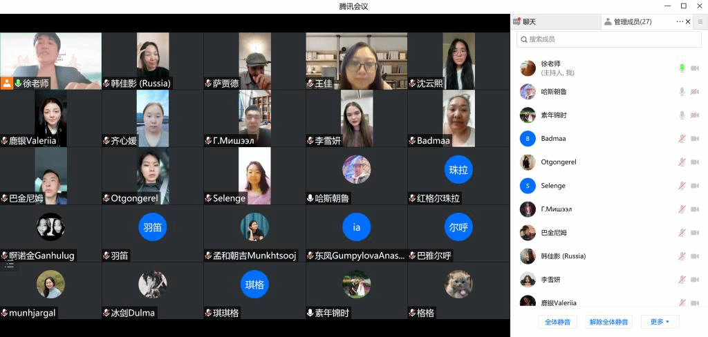 6月7日,必赢官网举办了留学生线上座谈会。对外汉语教研室全体教师及汉语预科班、俄罗斯交换生班、汉语言本科班、公共课班的来华留学生参加了此次座谈。