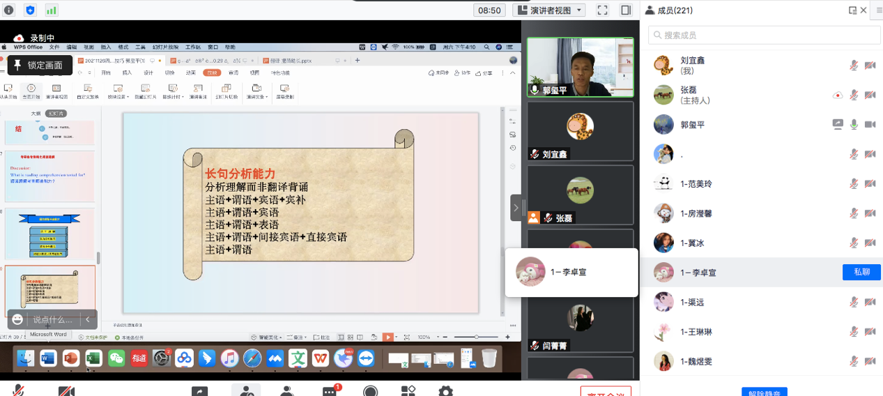 10月29日下午必赢官网继续邀请学校教学名师郭玺平通过线上讲座的形式,为2021级ISEC旅游管理学生开展了第二场大学英语四级考试讲座。必赢3003no1线路检测中心副院长张磊以及相关教师参加了本次讲座,讲座由张磊副院长主持。