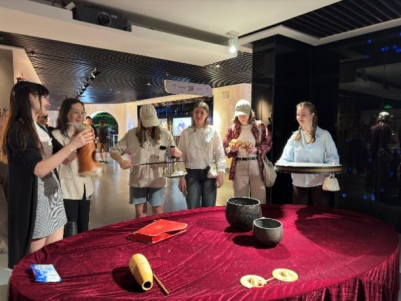 活动当日,必赢3003no1线路检测中心武海燕院长、郑月锋副院长携来自俄罗斯、蒙古国等 “一带一路” 沿线国家的 20 余名中外学生代表,走进这座收藏着 3 万余件世界音乐文化艺术珍品的宝库。中国摄影家协会会员、内蒙古音乐文化艺术文物收藏家哈斯巴更老师,以其跨越国界的艺术收藏,为中外学生们呈现了一场多元文化音乐盛宴。当各国学生在馆内发现本国传统乐器时,文化共鸣被瞬间点燃。俄罗斯学生轻抚三角琴琴身,蒙古国学生热情讲解马头琴的独特韵味,现场化作不同文明交流对话的生动课堂。中国学生也积极参与其中,分享对中国传统音乐文化的理解,中外学生互动频繁,共同感受文化交融的魅力。