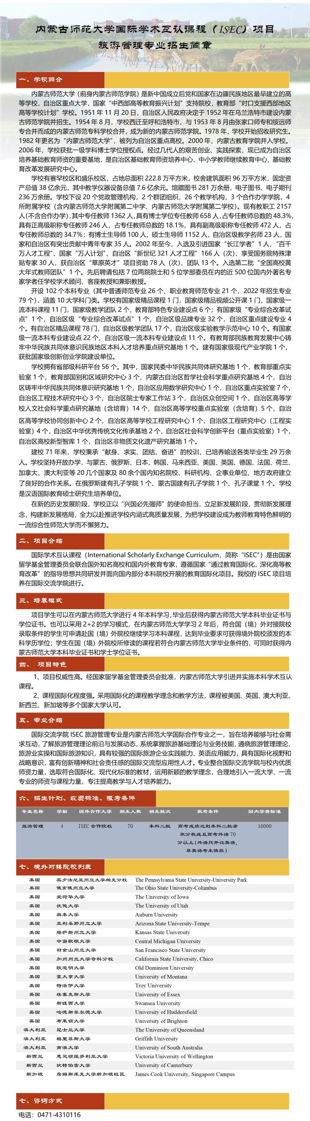2024年国际学术互认课程(ISEC)项目旅游管理专业招生简章